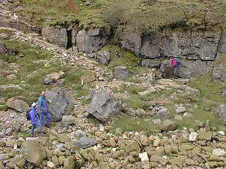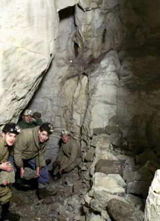 First attempt to dig Gavel Pot in the 1960'sUnfortunately the RRCPC didn't persevere and left it for the NPC to open. Ray Barker is at the back,Brian Clarkson on his right sitting down, the next lads name escapes me, Mike Steele is near left. |