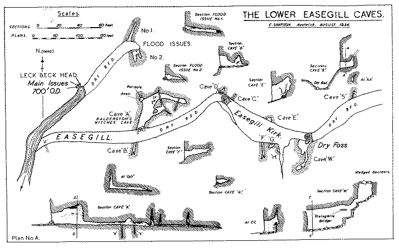 Lower Ease Gill Kirk Caves Survey Survey By Eli Simpson in 1934 From the BSA Records, now kept in BCRA Library