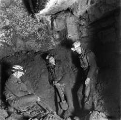 by a kink in the wall near PETERSON POT A 5m entrance pitch leads to a way into the first chamber, with a short muddy crawl leading off to the second chamber. An upper level route, requiring a 6m scale, also enters the second chamber. The cave was originally explored by RRCPC in 1950. See photo.