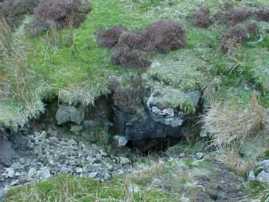 The way on is a 3m wet climb down a rift in the floor to the head of the 4m second pitch. This is very tight at the top, but enlarges lower down., landing on a boulder floor where the stream sinks. The water entering from the roof of the first and second chambers comes from the sink just over the wall from the entrance. The sink, Previously Enjoyed Hole,can be entered and a short dug crawl leads to the top of an 8m pitch dropping into the second chamber mentioned above.