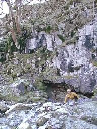 Drop down into loose chamber with precipitous slope, and across this is a short roof passage. In an alcove on the right is BLACK RABBIT CHIMNEY which descends to SQUARE CHAMBER with twin chimneys on each side. The west chimney leads to a series of crawls and avens, whilst the east chimney drops into MINT CRAWL which leads to a free climbable pot and a very unstable boulder choke.