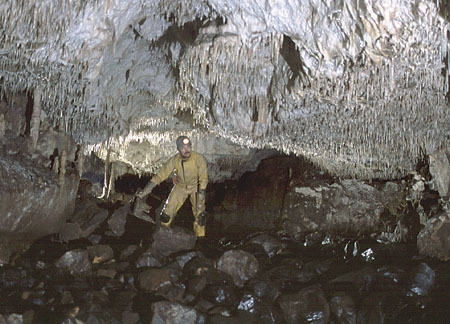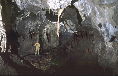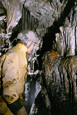 Above the final pitches is a roof passage leading to SOUTHBOUND PASSAGE a rift with two branches, one choked and the other becoming too tight.