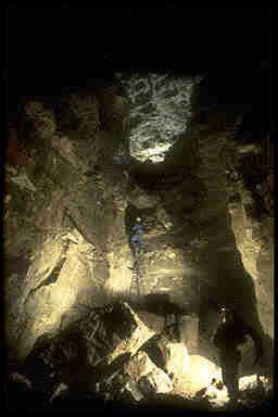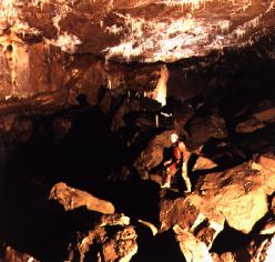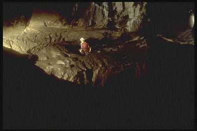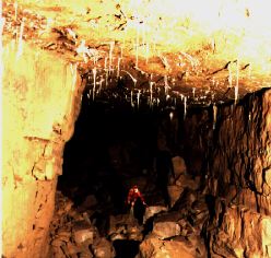Back in UPPER SNAIL CAVERN on the right wall here is a 8m fixed rope up to SIDELINE PASSAGE. This provides a link with MANCUNIAN WAY at the SURPRIZE. A few meters further on up a 8m climb on the right wall is the entry to MAINLINE PASSAGE which provide an alternative route to MAIN LINE TERMINUS normally reached by following the large open passage to where it splits into four separate passages.