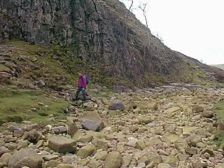 The entrance is surrounded by boulder dam in the left bank of EASE GILL below the confluence with HOWE GILL. Small climbs drop to the first squeeze into a wider passage and the HANGING DEATH SQUEEZE past loose blocks in a choke at the entrance to CONSORTIUM CAVERN. At the base of a steep upward boulder slope are two short drops into a wide low streamway. Upstream is a wet crawl to a breakdown chamber. Downstream is a wide silted bedding plane to 46m of easier going to a junction. Straight ahead soon ends in a boulder blockage and choked avens, Whilst the crawl continues for 61m to a low chamber and sump. The far reaches of this cave, connect to THE SILVER STREAMWAY of THE LONE RANGER SERIES in LINK POT