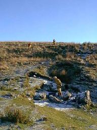 slope. To the left at the bottom of the slope an easy climb up