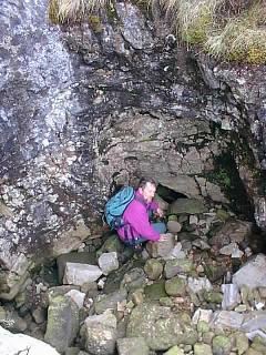 the left as a large inlet. This can be followed up a 4.5m waterfall